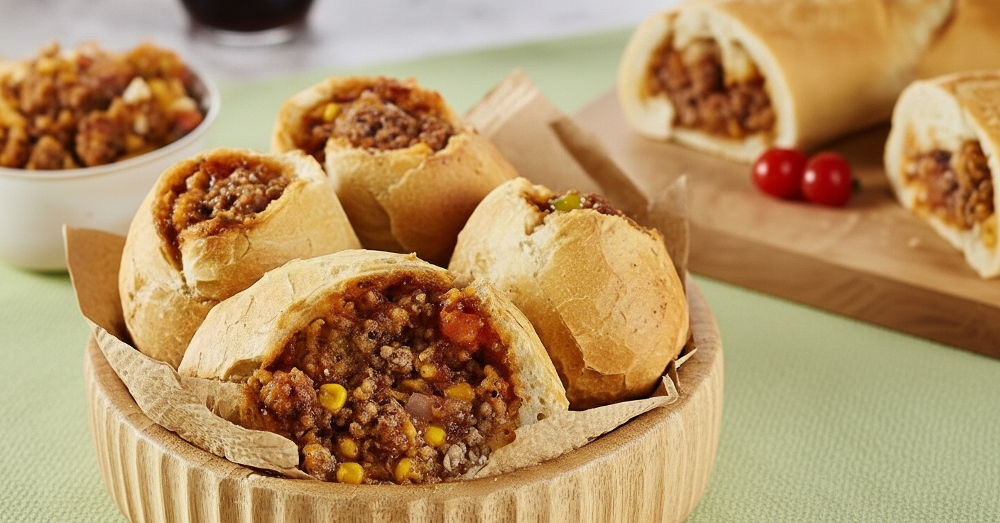 - Montagem e Serviço: Recheie cada pão com o refogado de carne moída bem quente. Se desejar, polvilhe queijo muçarela ralado por cima e leve ao forno pré-aquecido a 180°C por 3 a 5 minutos, apenas para derreter o queijo e aquecer bem o pão. Sirva imediatamente!