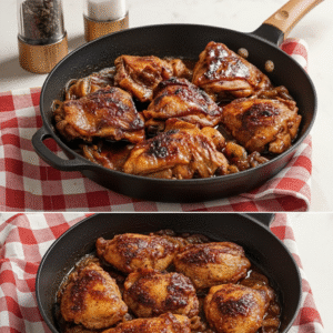 As sobrecoxas podem ser guardadas em um recipiente hermético na geladeira por até 3 dias. Para reaquecer, use o forno ou a frigideira em fogo baixo, adicionando um pouco de água para evitar que ressequem. O molho ajuda a manter a umidade do frango.
